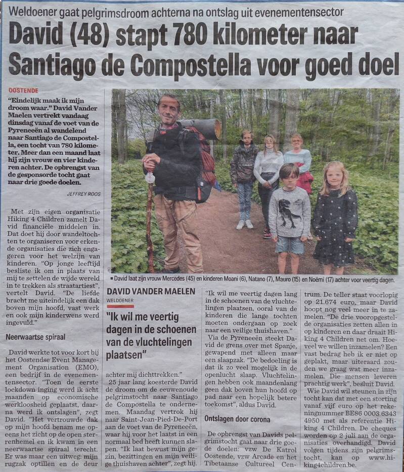 Het vertrek is voorzien op 10 mei 2021; de aankomst in Compostella op 18 juni 2021.