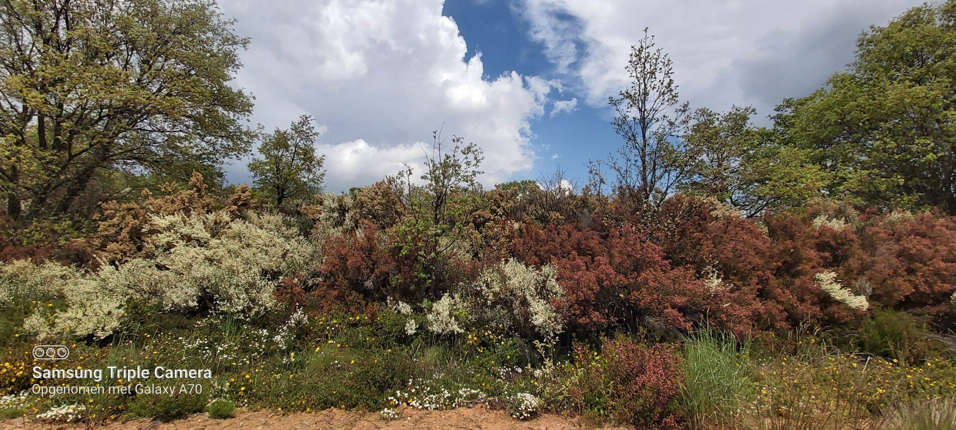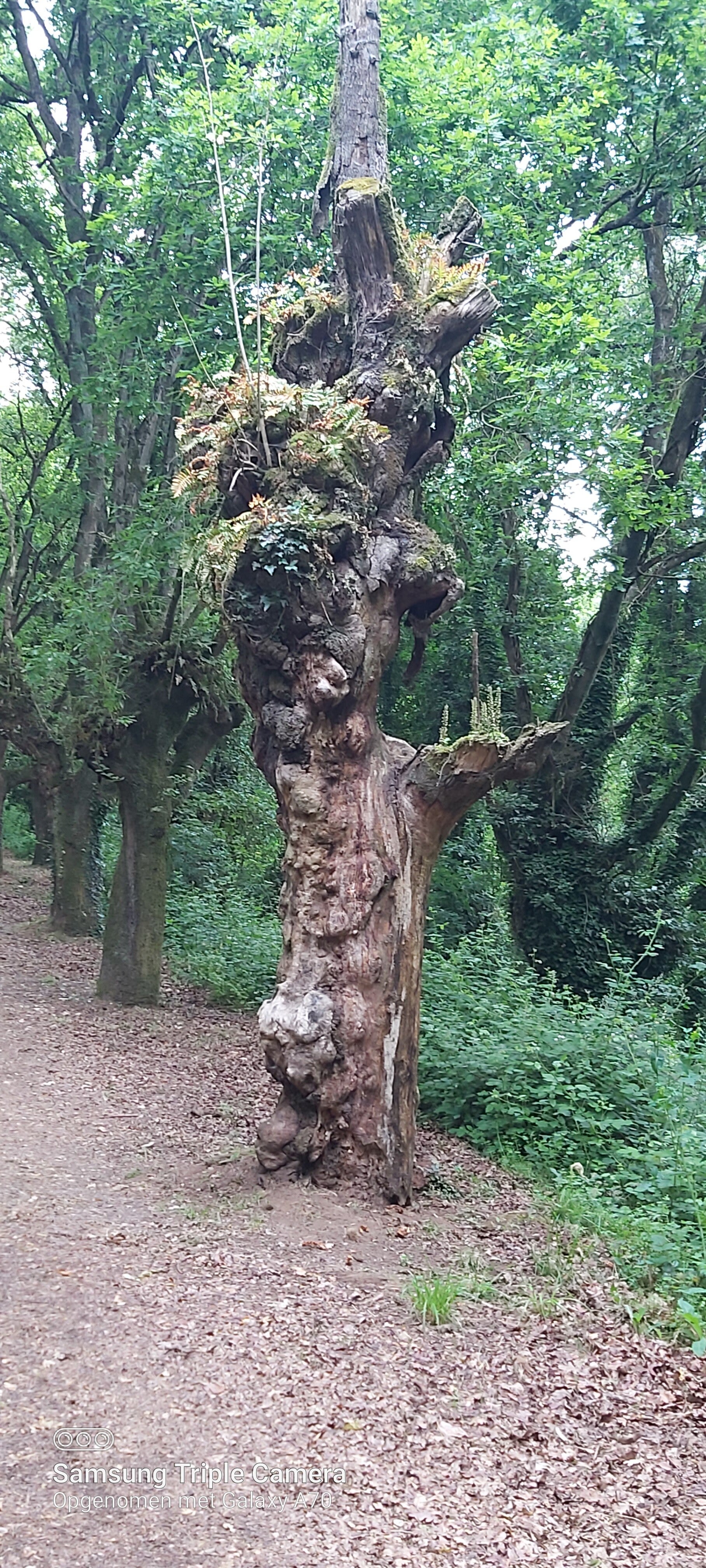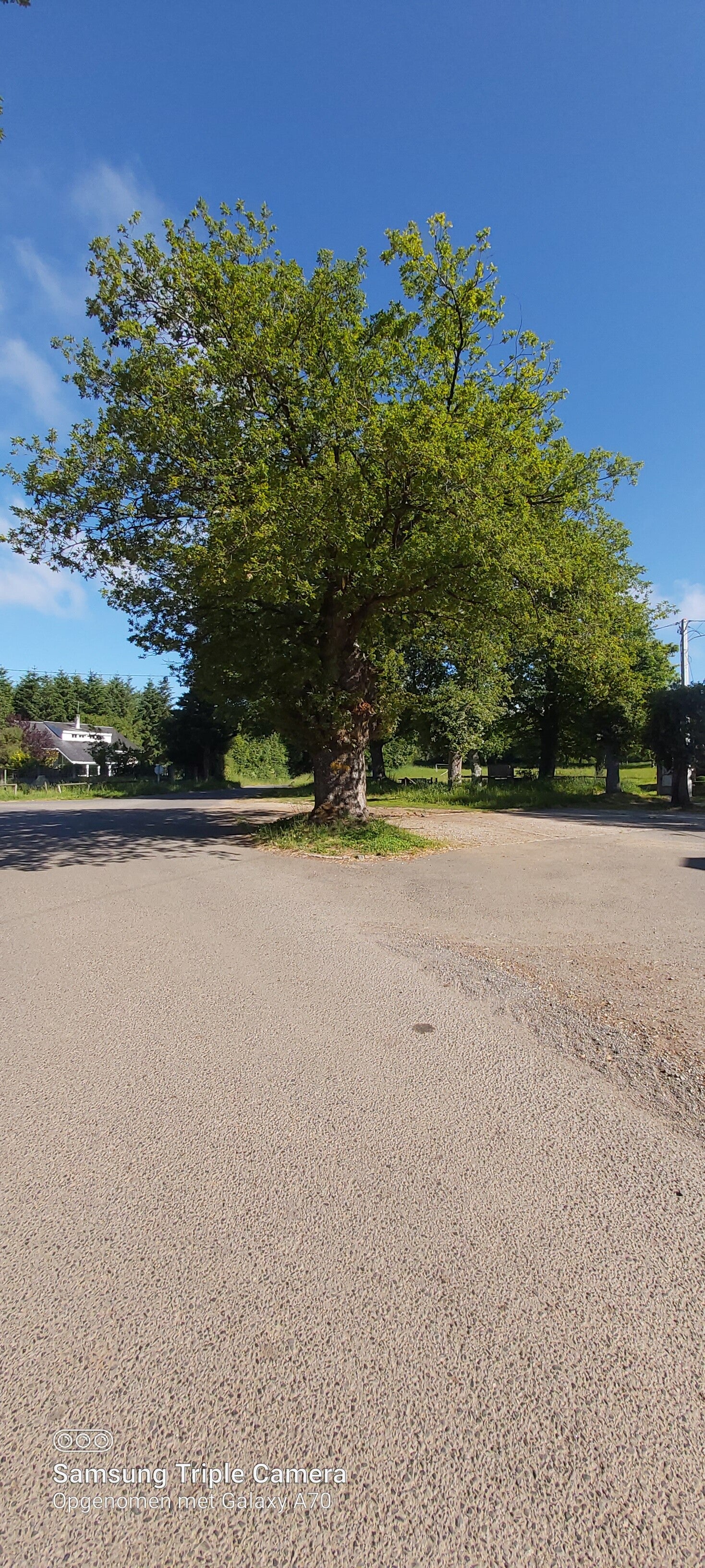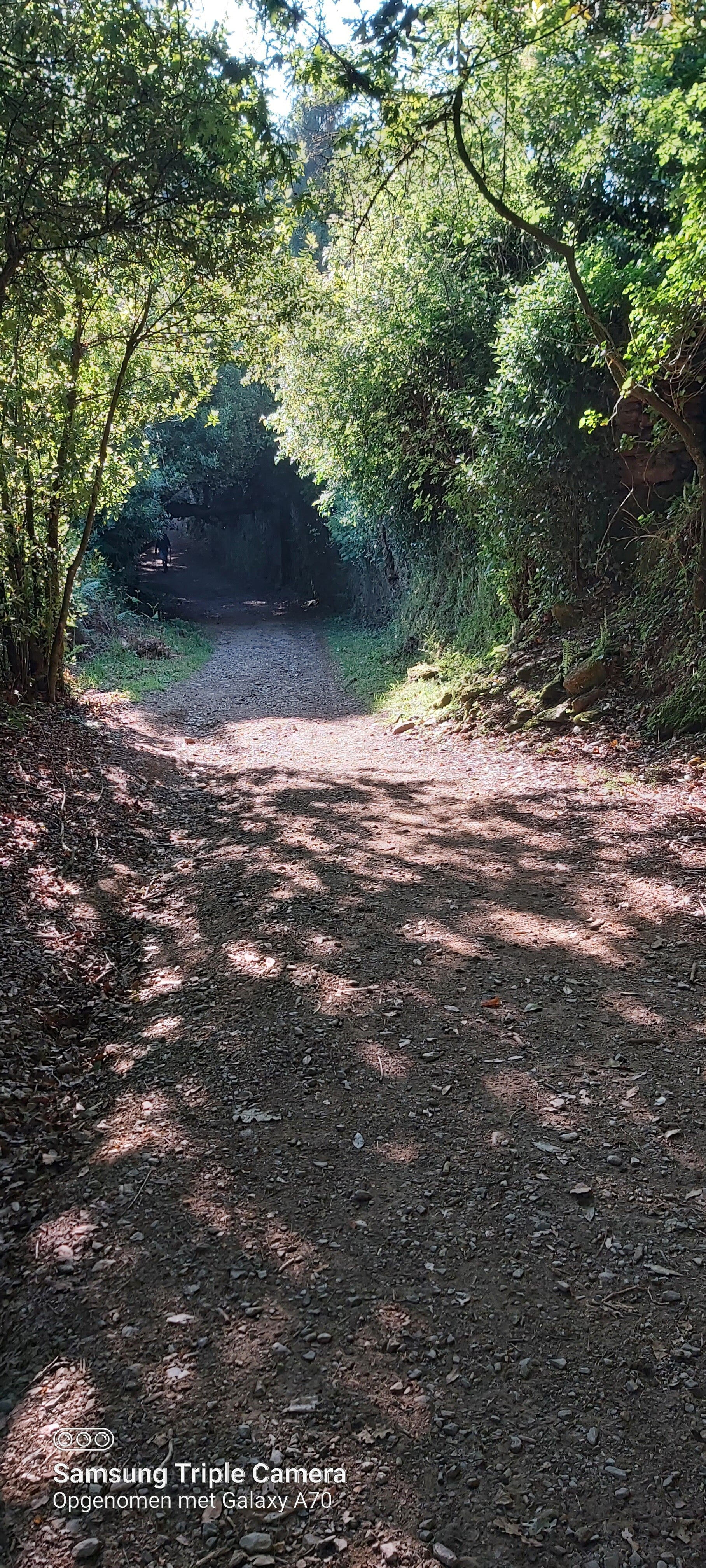 Ondertussen moet ik toegeven dat ik bijna nooit geen steen meer in me schoenen krijg. Heb er zelf een spelletje van gemaakt: steen in rechterschoen beslis ik om te vertragen, in linker, om iets sneller te stappen. In de twee, want moet er om doen dat dat soms ook gebeurd, dan stop ik. Doe men schoenen uit, blote voeten op de grond en doe een kleine meditatie. Gek genoeg, toeval zeker, gebeurd dit meestal waar de kruin van bomen die aan beide kanten van een weg zijn zich raken. Waar de takken van de ene boom in contact komt met die van een andere kant.