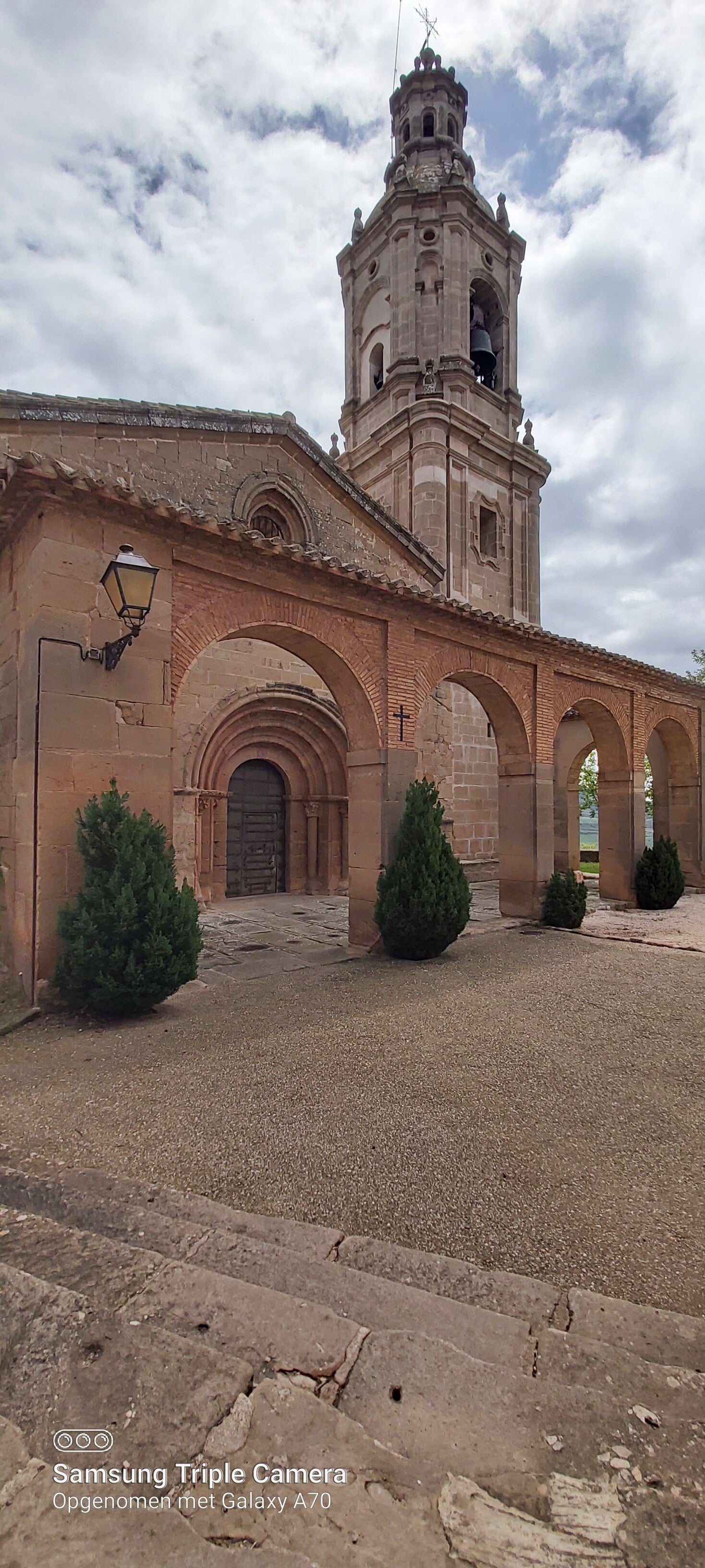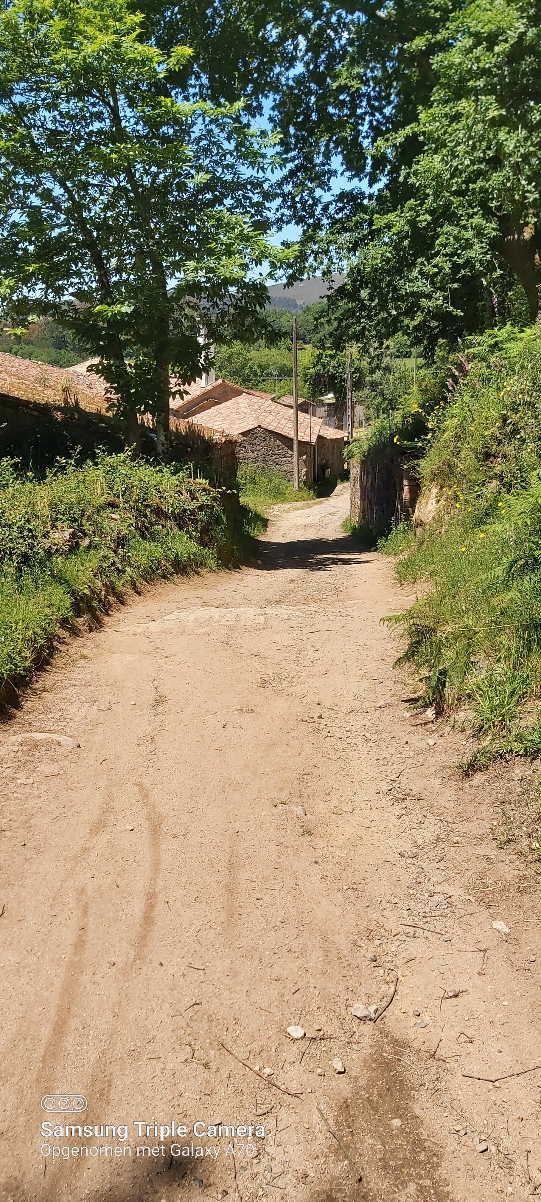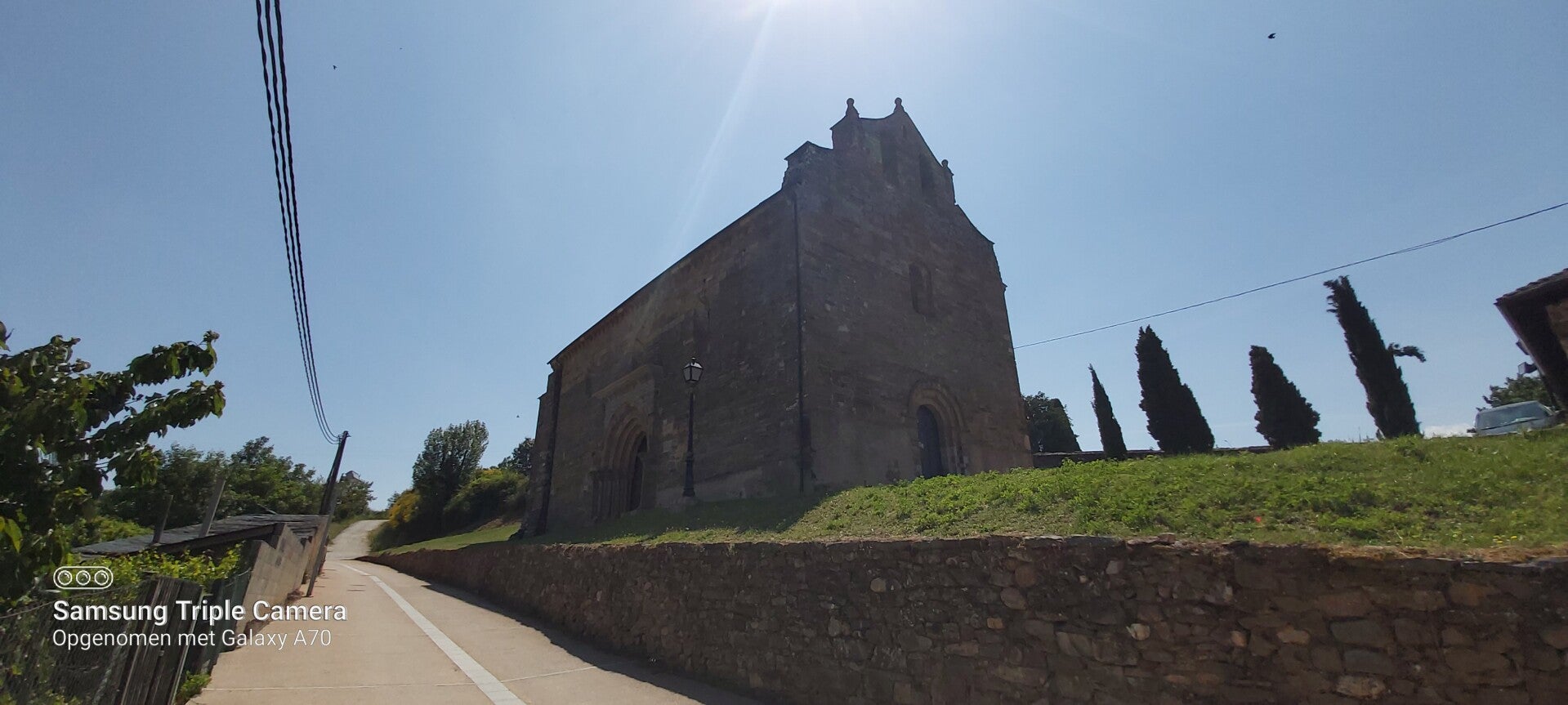 15.00 aangekomen aan klooster van Samos. Ik zie voorhet eerst sinds mijn Tocht een non over straat lopen. Hier is er een Albergue en velen komen er normaal gezien onderdak vragen. Al voel ik het gewicht niet herinner ik me dst ik die tent nog bij me heb. Ik ga ervan uit dat ze hier wel zullen weten aan wie ze deze zullen kunnen schenken. Ik besluit het hier dus achter te laten. De Albergue lijkt gesloten maar ik hoor dat ze in de namiddag bezoek uren zijn. Ik laat die dus voir de deur liggen. Ze vinden hem wel. 2 keer gewicht minder. De tent en.mijn geweten. Is goed.