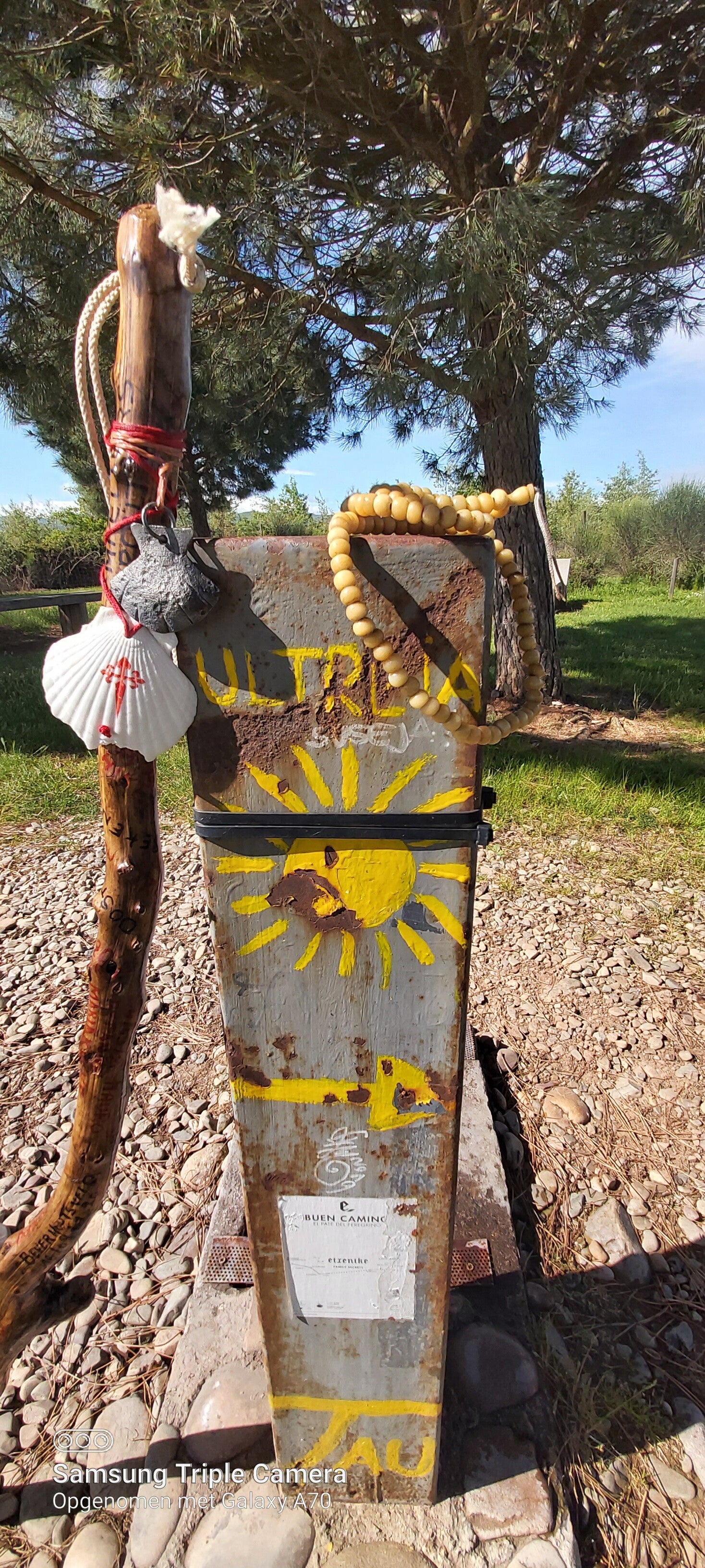 Voor me passeert de Spaanse van gisteren. Haar knie volledig in geplankt, twee houten stokken om haar te ondersteunen. Wat een moed! We spreken even. Ze wil er geraken. En dat zal ze ook. Nog 11km. Al moet ze het in 2 dagen doen. Ook dit is de Camino 🙏🙏🙏