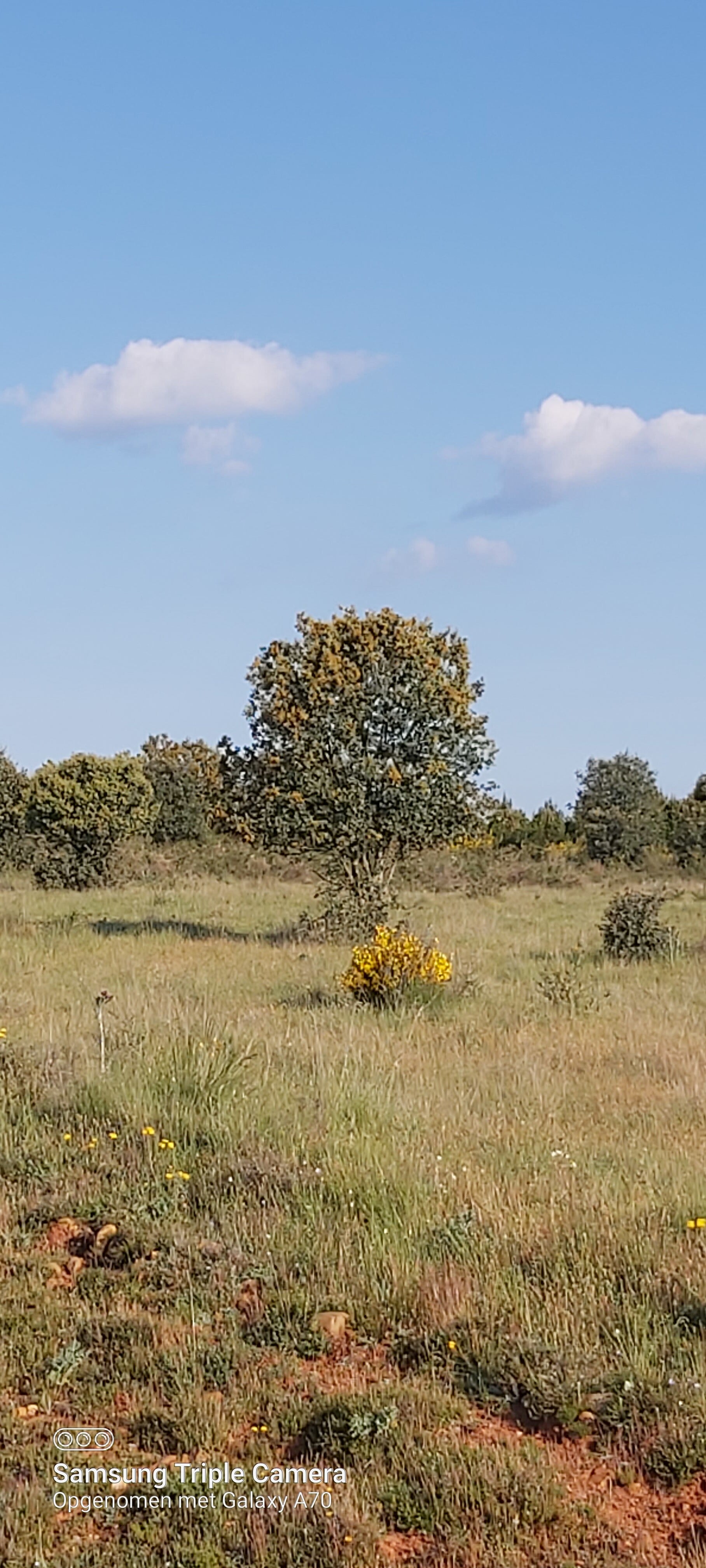 Ik neem wat verder op een halte om eindelijk een klein ontbijt binnen te spelen. Raad eens: ja stokbrood blok kaas (Spaanse) en rest van men Belgische worst (die nu op is). Het doet deugt na die 3 sloken lekkere wijn op nuchtere maag. Er passeren al heel wat meer Pelgrims op de Weg. Tot vandaag had ik tijdens men dag etappes bijna nooit iemand tegen gekomen. Sedert de wijnfontein van.... is dat al heel anders. Het voelt goed. Ik stap verder. Het gevoel is echter volledig terug bij me. Het duurt echter niet lang want moete er juist om doen dat ik uit elke schoen een kiezelsteenje moet halen. Juist hier: